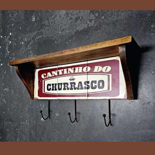 Fixados na parte traseira estão 3 ganchos de metal na cor tabaco. Peso da peça: 3,850k